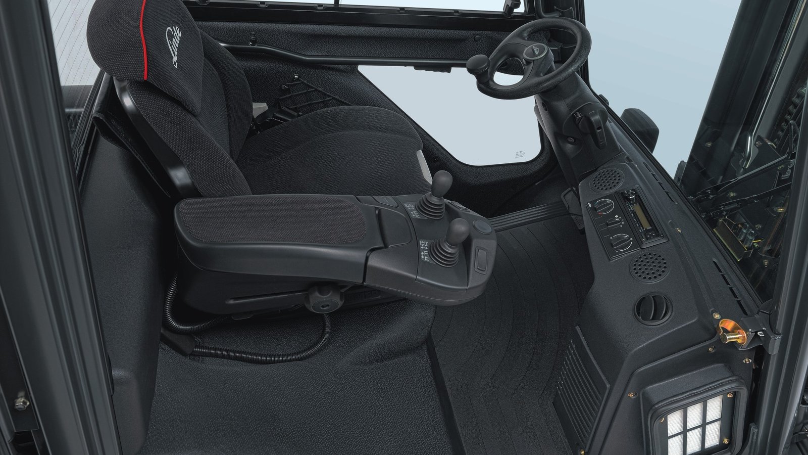 U svim viljuškarima za teške terete kompanije Linde postoji stub upravljača podesiv po visini, koji se precizno može prilagoditi vozaču. Svim funkcijama podizanja se upravlja putem ergonomično oblikovanih palica. Ergonomično radno mesto se opciono zaokružuje zakretnim sedištem vozača, koje rasterećuje kičmeni stub prilikom vožnje unazad. Dodatno je dostupan jak klima-uređaj*.